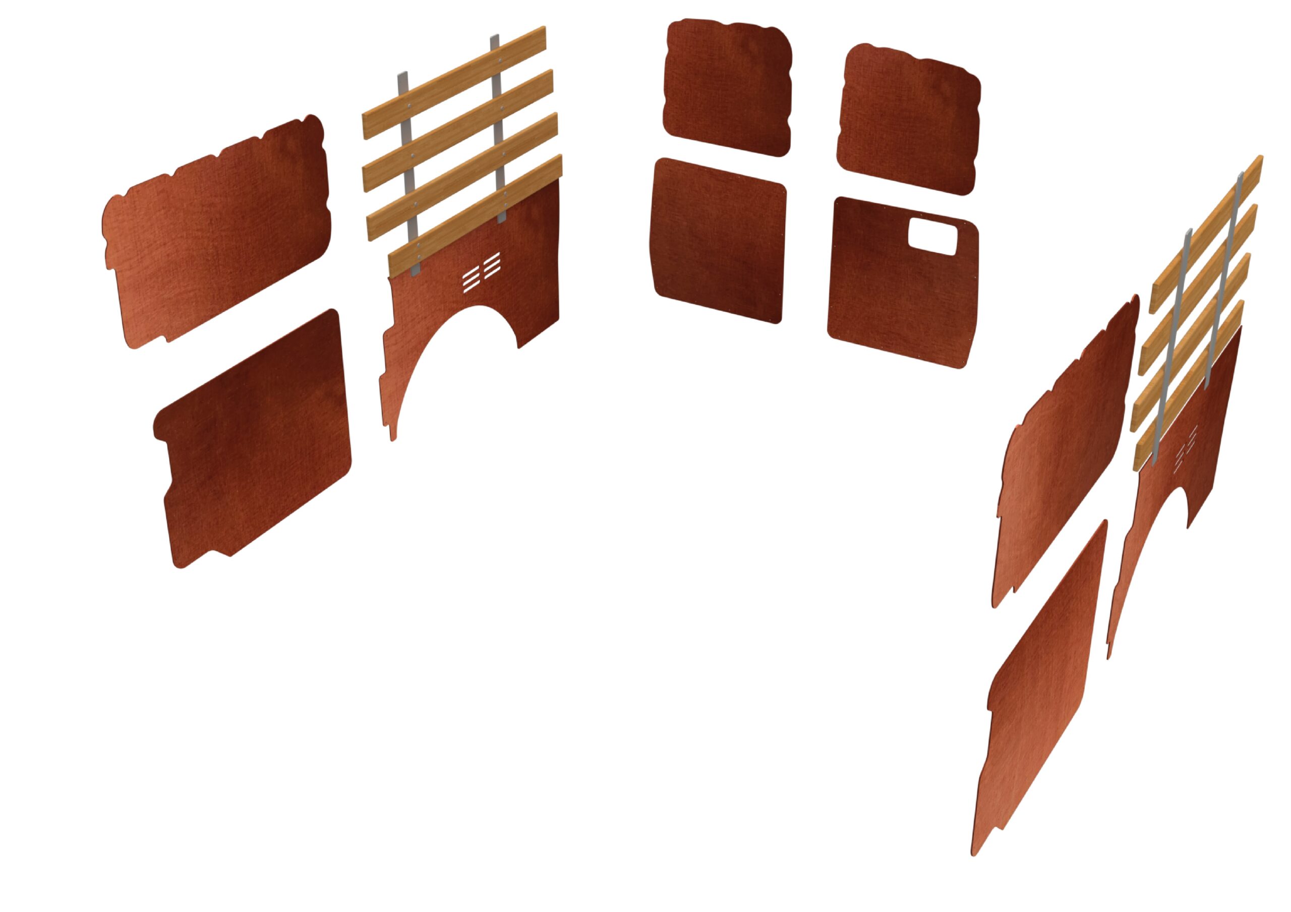 Combiwand- en deurpanelen, lat-om-lat, dubbele schuifdeuren en achterdeuren bruin, L2 (Geschikt voor Ford Custom 2025), (afbeelding ter illustratie)
