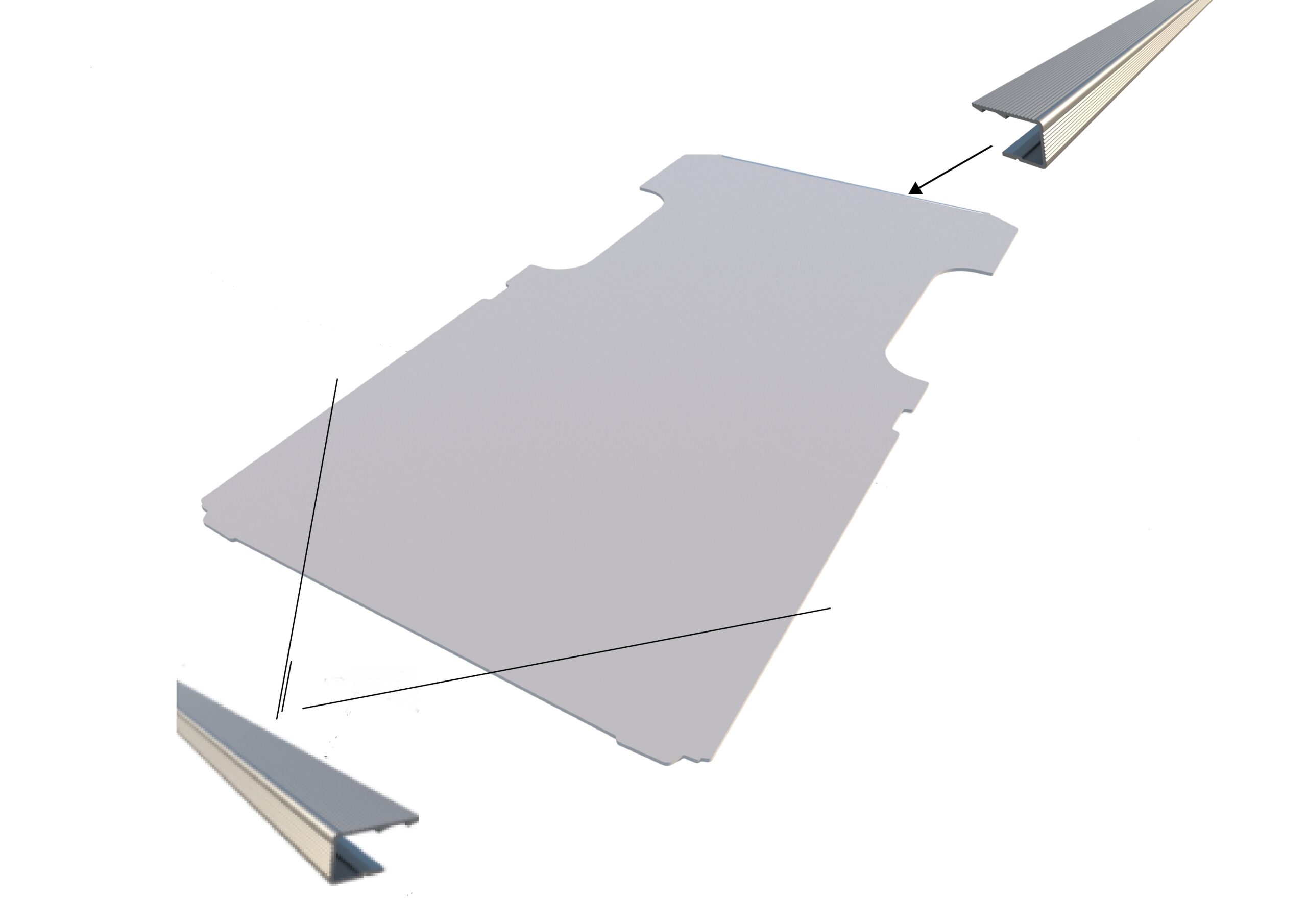 Vloerplaat, doorlopend bij de schuifdeur, dubbele schuifdeuren uitvoering , grijs, 9mm incl instaplijsten, L1 (Geschikt voor Ford Custom 2025) (afbeelding ter illustratie)