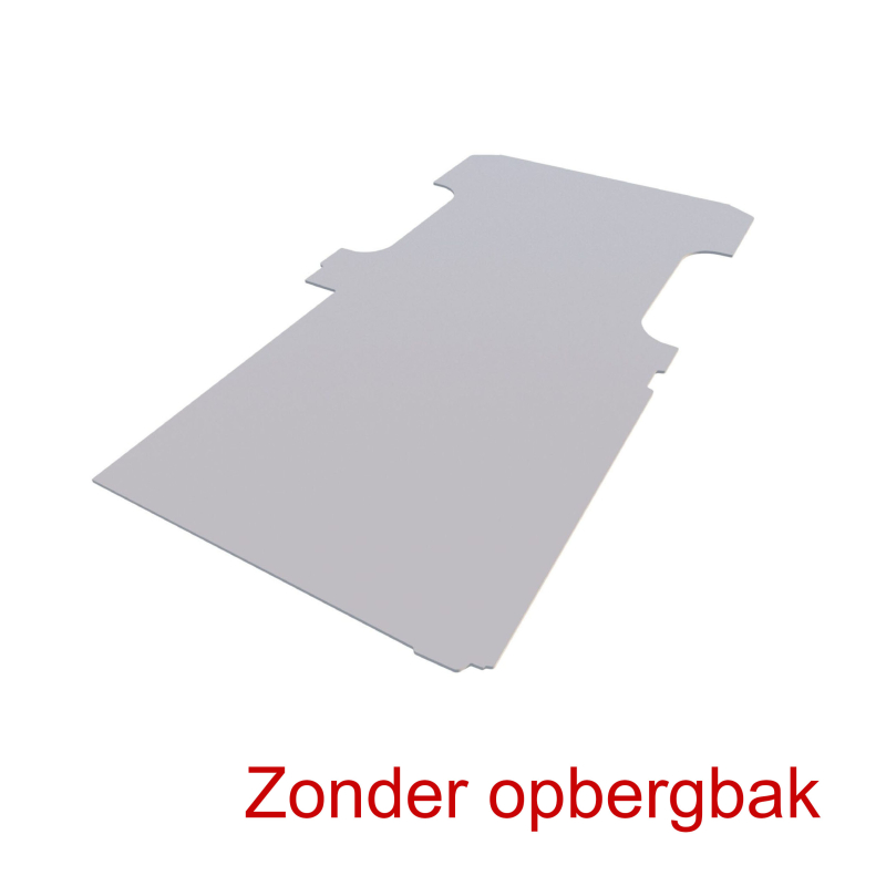 Een grijze vloerplaat van hout voor het beschermen van de laadvloer van uw bedrijfswagen. De vloerplaat is 12 mm dik. Alle vloerplaten zijn erg sterk en beschikken standaard over een anti-slip laag. Op aanvraag kunnen wij de vloerplaat voorzien van uitgefreesde sjorooggaten, vloerkuipen en vloerdeksels. Afhankelijk van het model van de bedrijfsauto kunnen de afbeeldingen licht afwijken van de realiteit. Zonder opbergbak