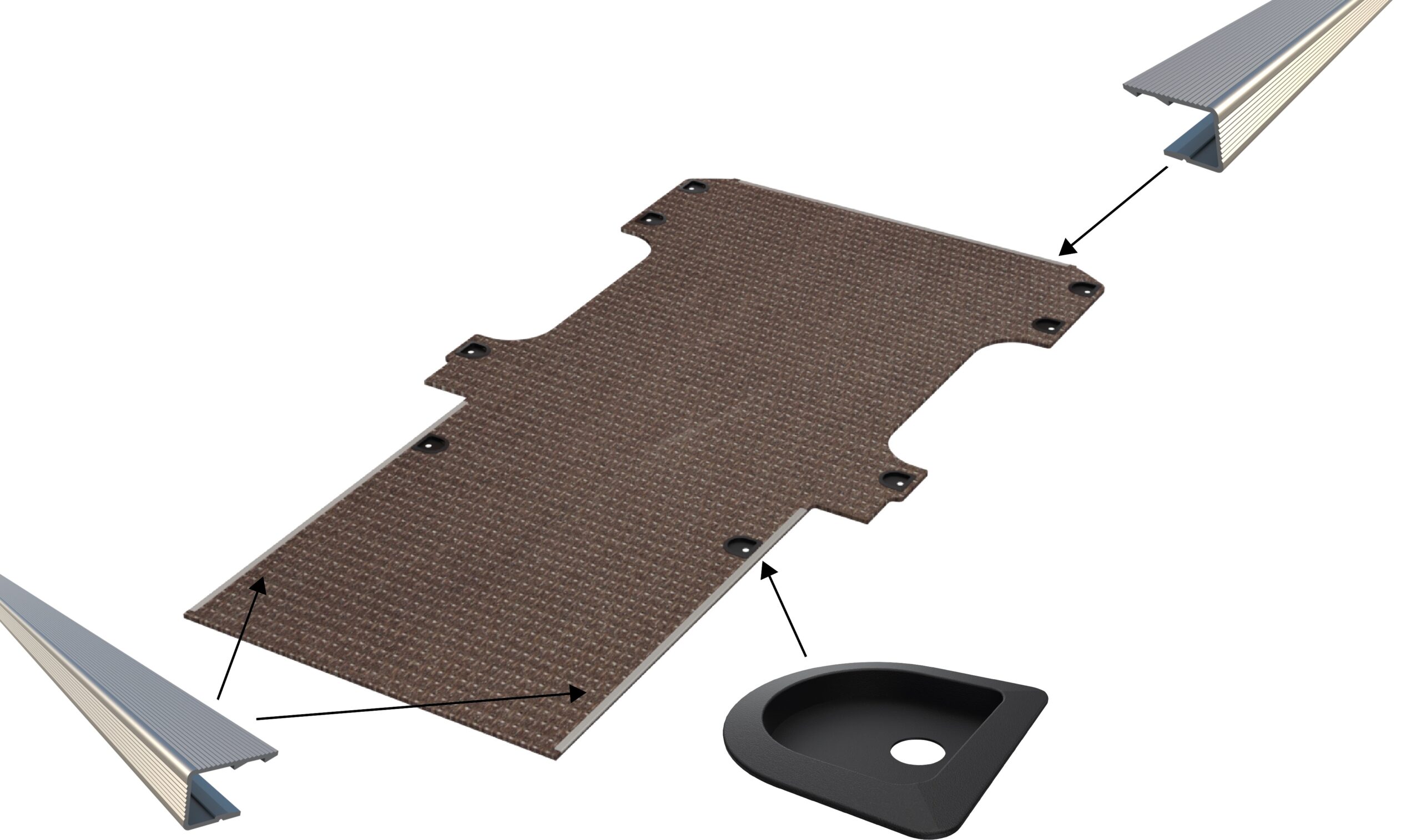 Vloerplaat, dubbele schuifdeuren en achterdeuren , bruin, 12mm incl 6 vloerkuipjes en instaplijsten, L2 (Geschikt voor Jumpy / Expert / ProAce / Vivaro / Scudo / Jolly) (afbeelding ter illustratie)