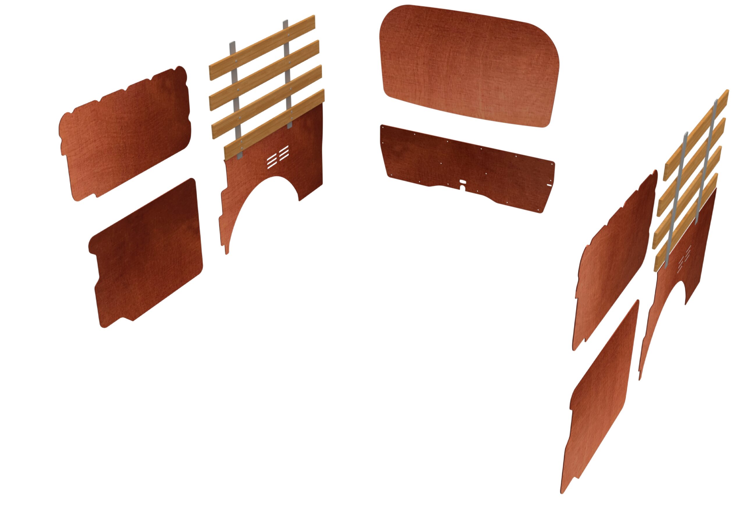 Combiwand- en deurpanelen lat-om-lat, dubbele schuifdeuren en achterklep bruin, L2 (Geschikt voor Volkswagen T6) (afbeelding ter illustratie)